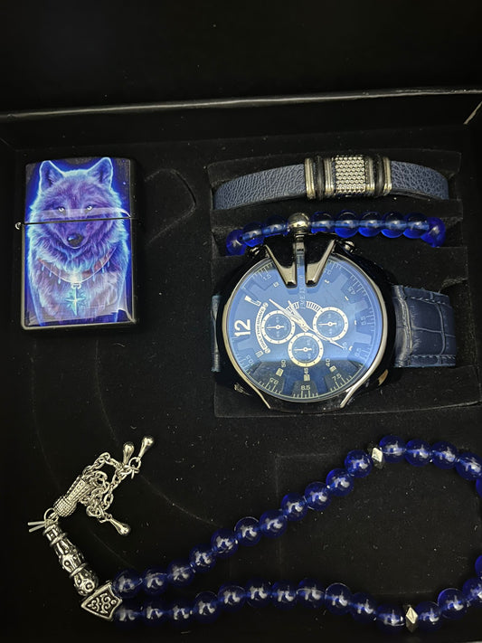 Erkek Kol Saati Bileklik 5 Parça Hediye Set Çakmaklı